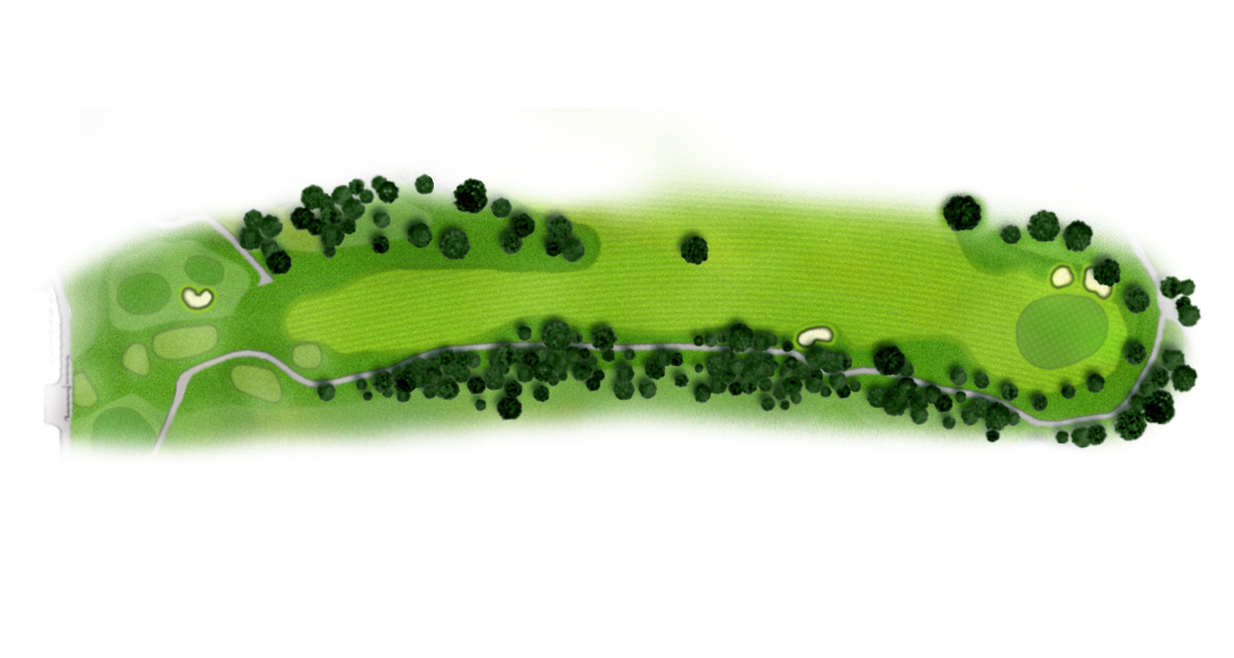 右ドッグレッグのミドルホール。フェアウエイ左側から攻めていきたい。右側OBエリアに注意。