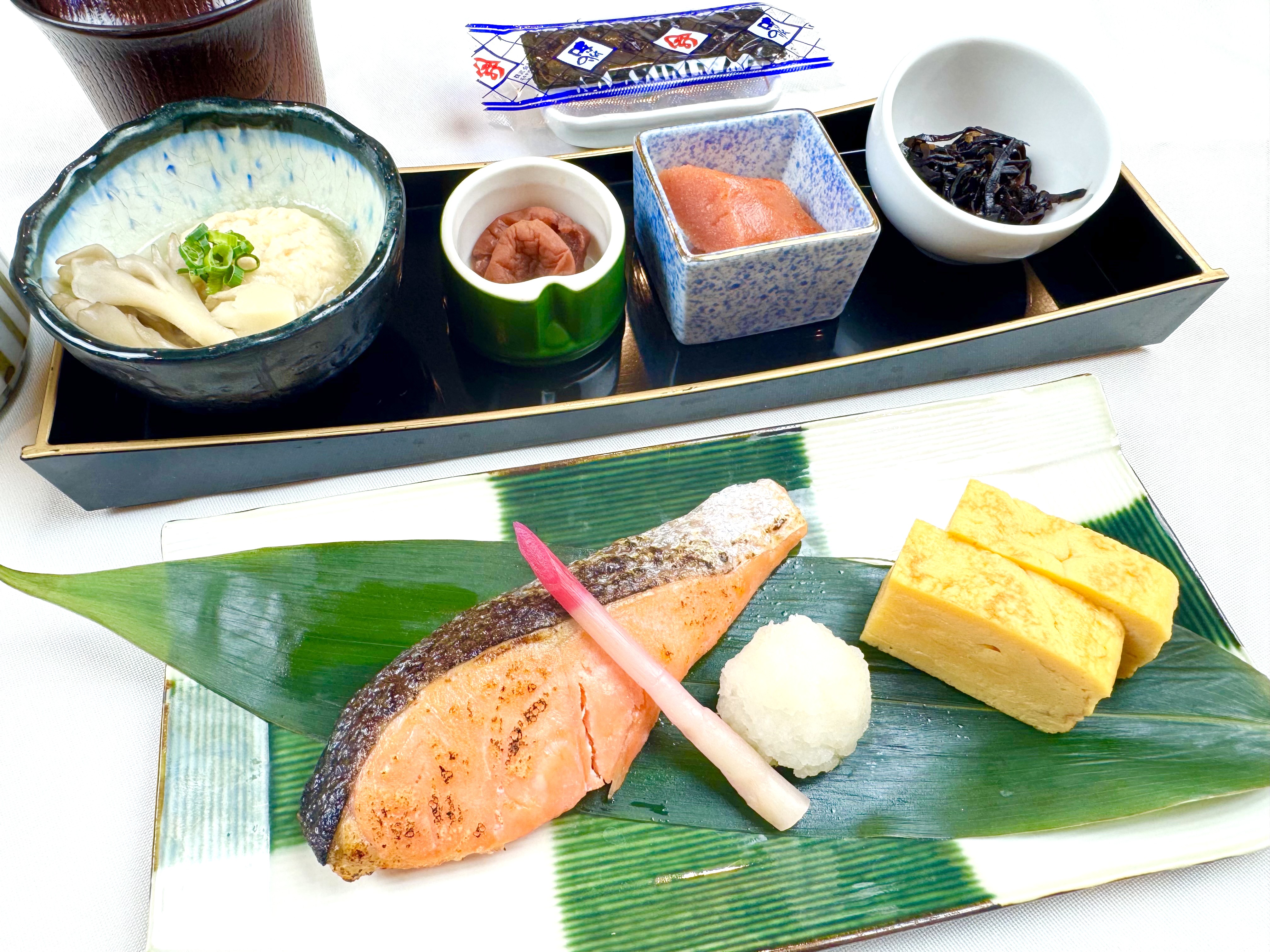 白飯orお粥・焼き魚セット・玉子焼き・海苔・味噌汁・漬物 1,870円